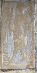 Un fragment de cette dalle équestre se trouve dans le pavage actuel sous les orgues.
