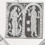 Deux personnages à genoux, arcature trilobée