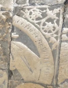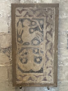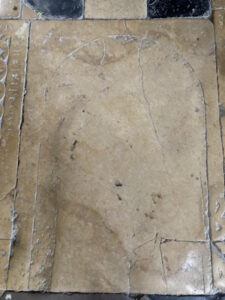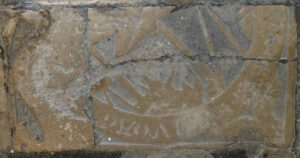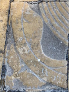 Au lieu d’un simple carreau de pavement, on s’est servi d’une dalle gravée du XIIIe siècle sciée.