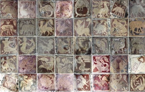 Dalle : neuf médaillons avec animaux